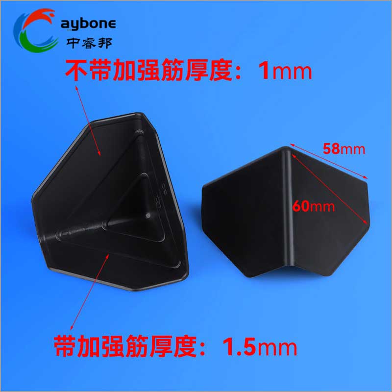 Raybone 50/60/80MM plastový ochranný rohový čierny kartónový chránič má mnoho veľkostí, ako je zahustený 48 * 50 * 2,5 mm alebo normálny 58 * 60 * 1 mm, ktoré podporujú strih podľa potrieb našich zákazníkov.